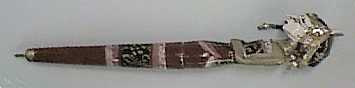 |    インドネシアに家族旅行にいったときのお土産のひとつです。インドネシアの影絵に使う人形のワヤンを軸にしたボールペンです。ワヤンには、木で作ったワヤン・ゴレと皮で作ったワヤン・クリがあります。これは木のワヤン・ゴレです。 以前、バンドゥンにあるお土産用のワヤンの工場を見学したときに、このボールペンも作っていました。全部手作りで、ペン軸の穴も電動ハンドドリルで開けていたのには驚きました。ボールペンの替え軸はインドネシア製で、時々出ないものもありました。 インドネシアの都市の街角には、色々な屋台に混じってボールペンのインクの入れ屋さんがいました。 【商品名】ボールペン インドネシア製 【定 価】200ルピア(1998年3月時点)  |